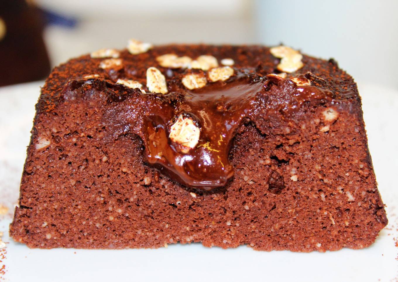 La base de este coulant es la harina integral de avena de BIONSAN, claras de huevo, cacao en polvo desgrasado y sin azúcar, eritritol y un aporte extra de proteína aislada.