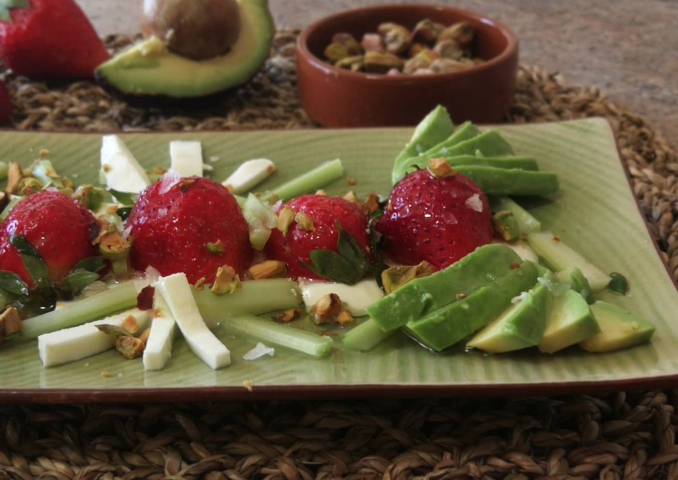 El sabor peculiar de el apio contrasta con el sabor de las fresas y el queso fresco. Una mezcla de aromas, que no te das cuenta ni cuando acabas el plato, comiendo y comiendo, saboreando y saboreando.