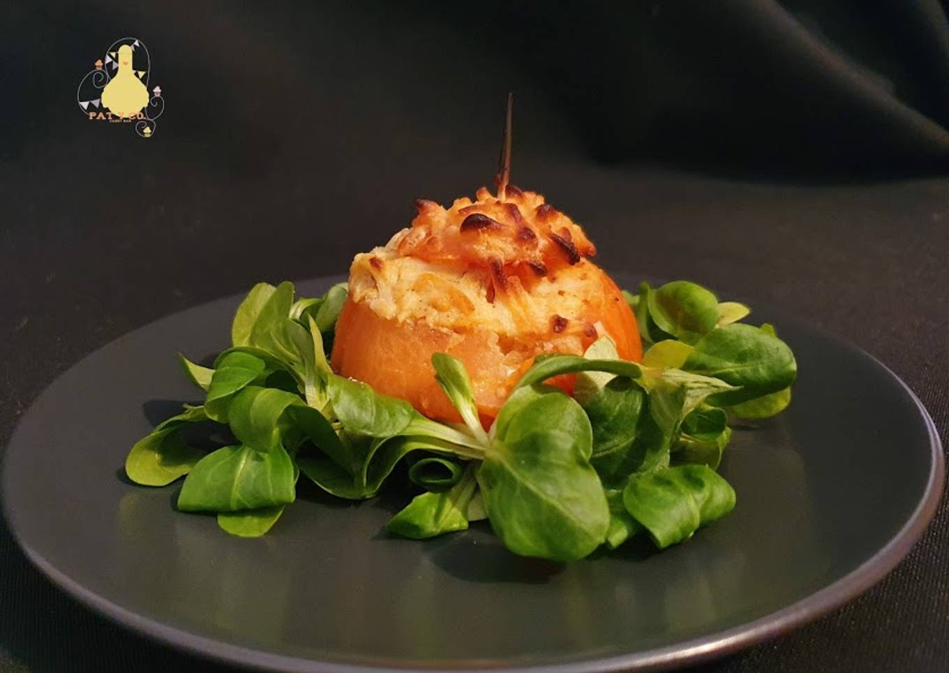 *Tomates gratinados rellenos de hummus y huevo*