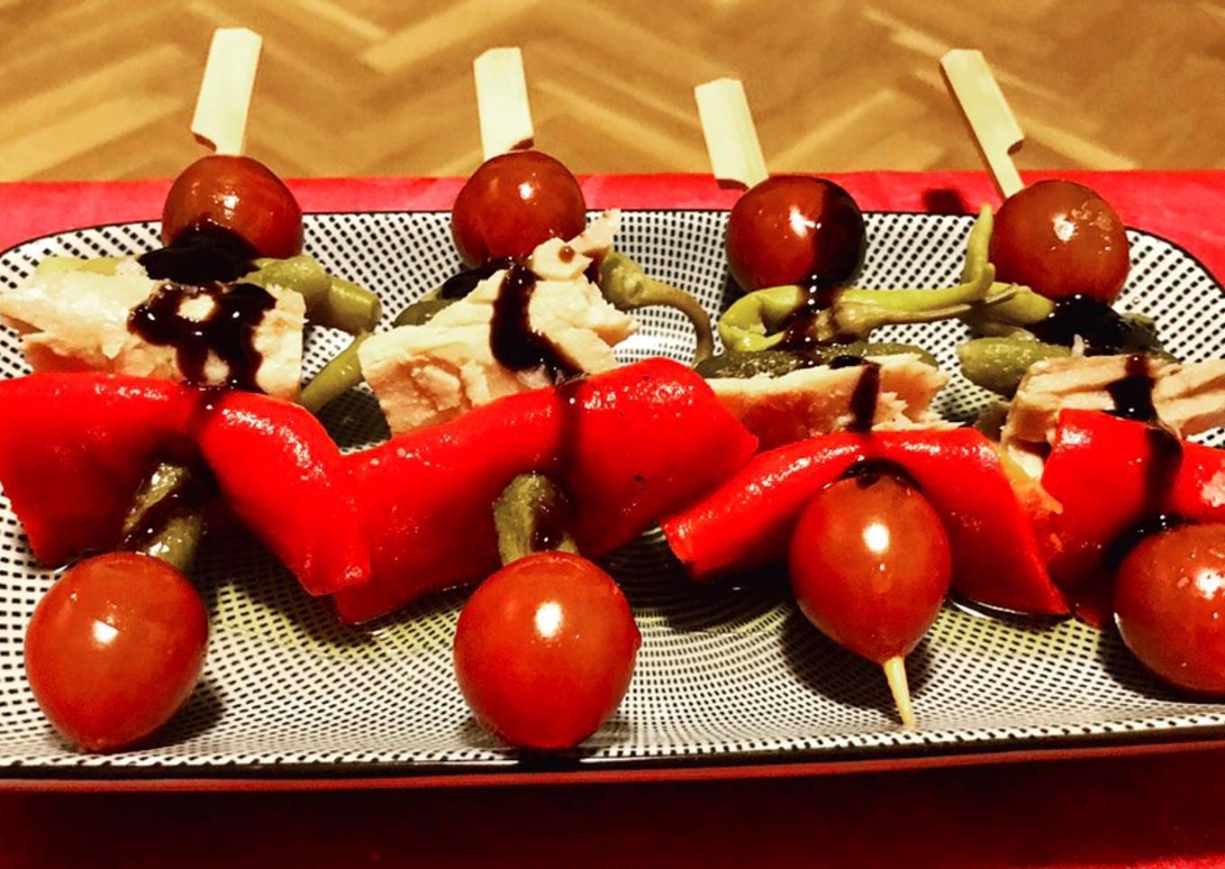 En casa nos encantan los encurtidos asà que el otro dÃa preparé en un momento unas mini brochetas con tomates cherry, bonito, pepinillos, pimiento asado y piparras que quedaron deliciosas. Es la tÃpica cosa que comprada en tienda sale muy cara y hacerla en casa son 5 minutos.