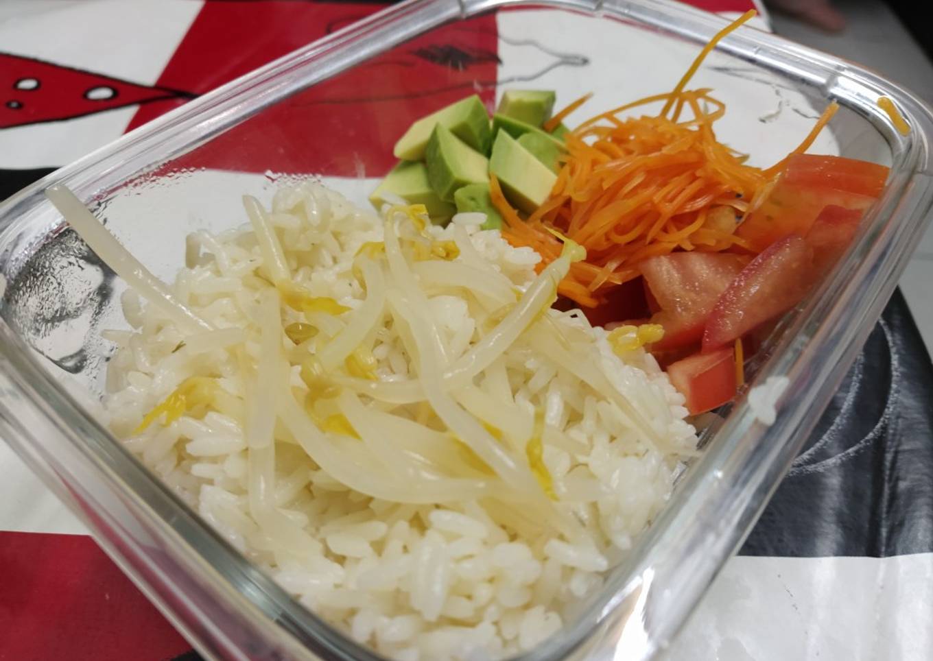 - Cuando est茅 el arroz ponemos en un recipiente (tupper, plato..) a un lado a帽adimos los dados de tomate, al otro los de aguacate.