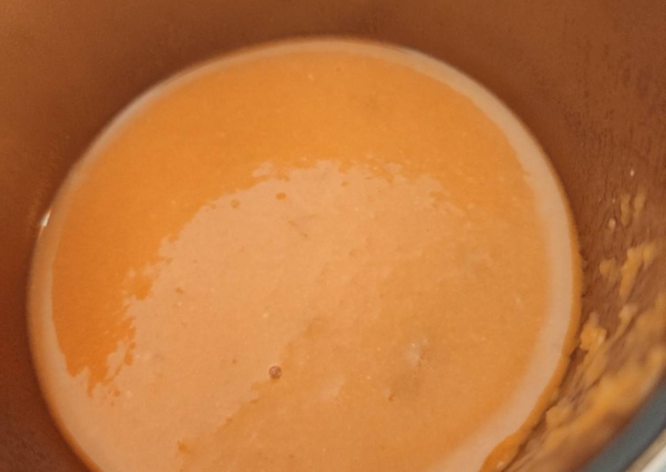 - En un recipiente ponemos las verduras cortadas y el Zumo de tomate, con ayuda de una batidora de mano lo trituramos bien todo