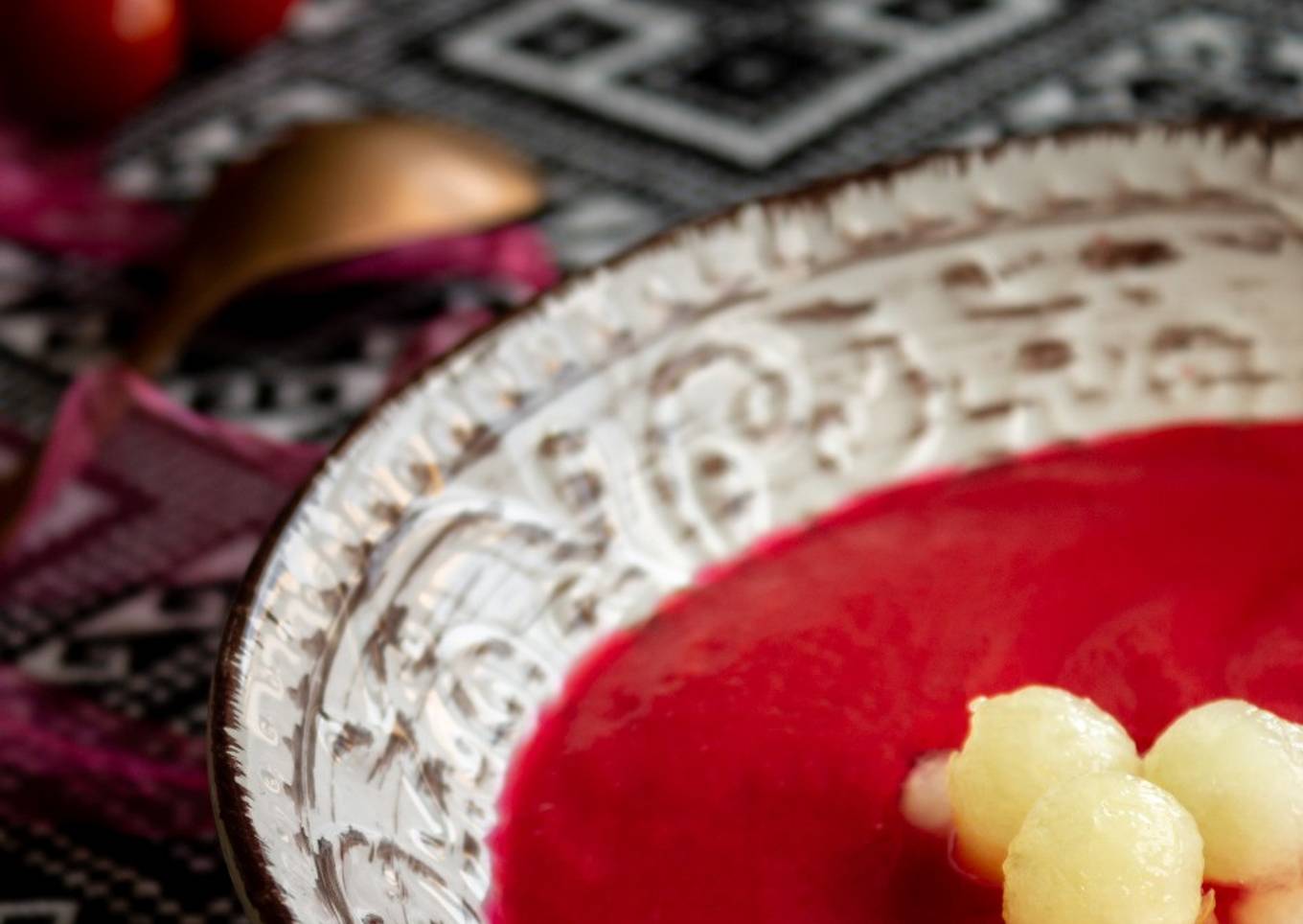 Gazpacho de remolacha y perlas de melón