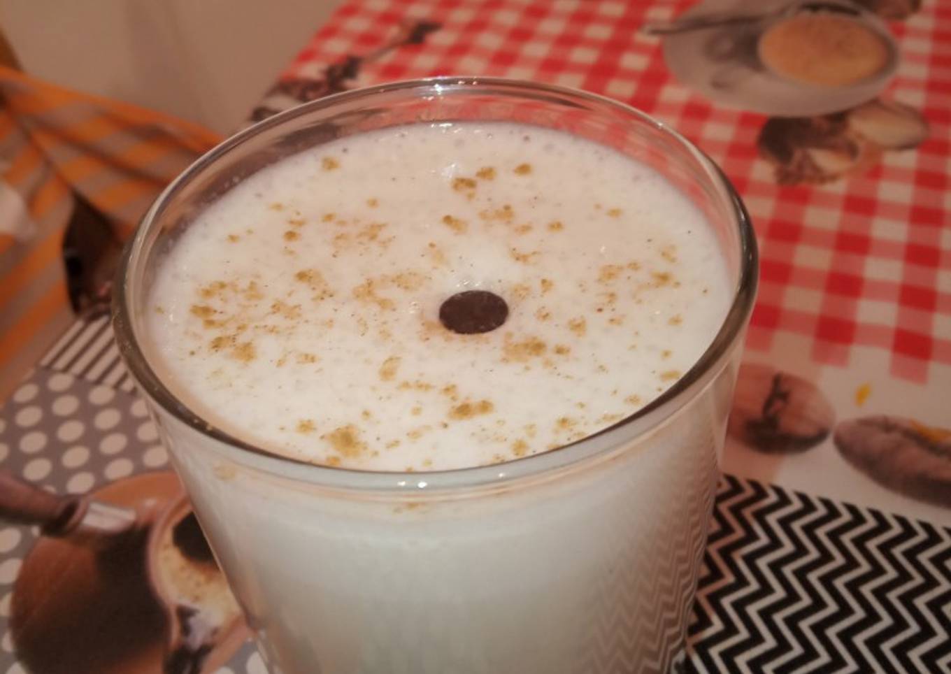 - Añadimos la leche y volvemos a batir integramos todo bien que quede bien batido, servir en vasos y espolvorear con canela.