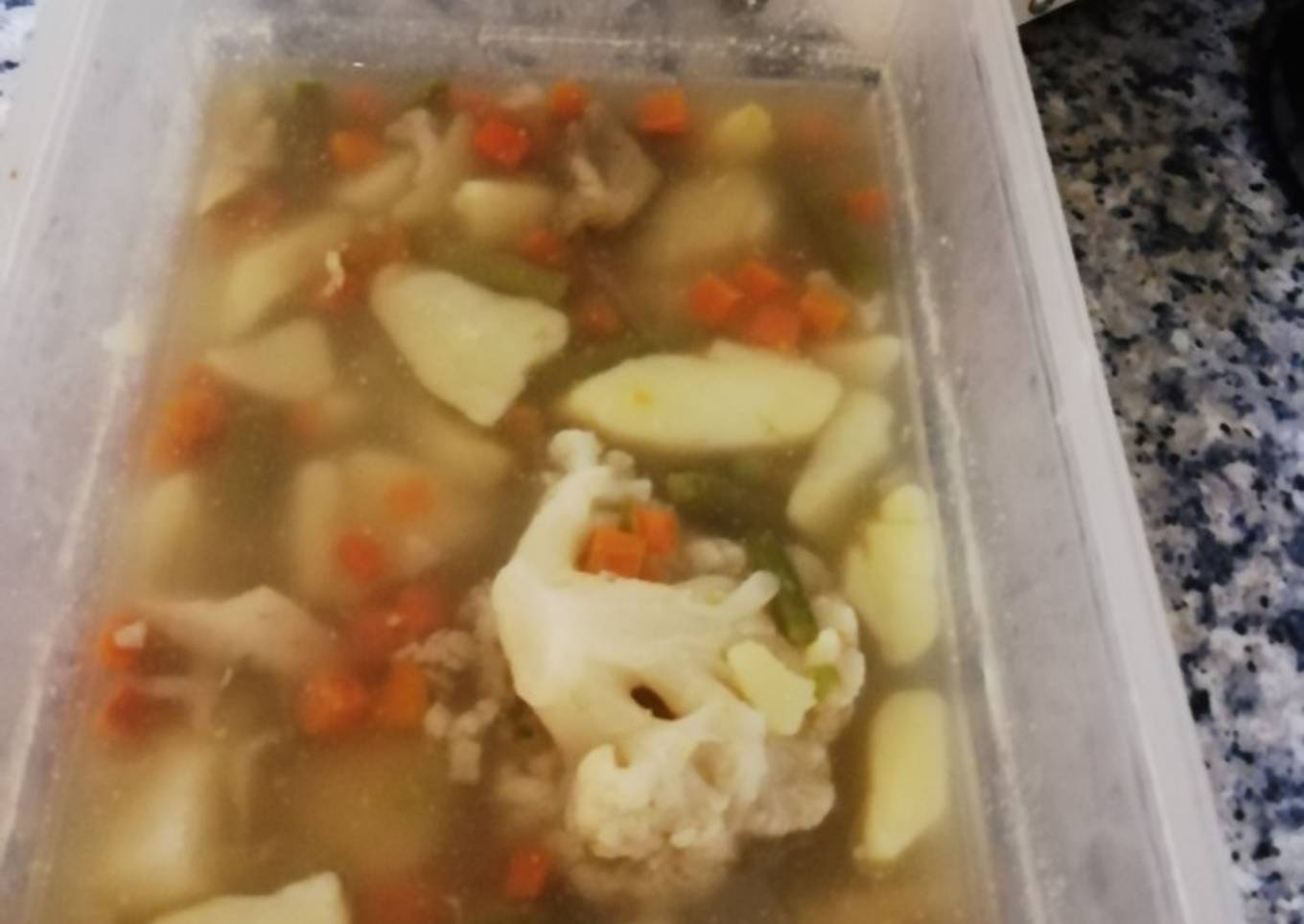 - Se pone a cocer la menestra, junto con la patata, y la coliflor y las pastillas de caldo 馃 馃