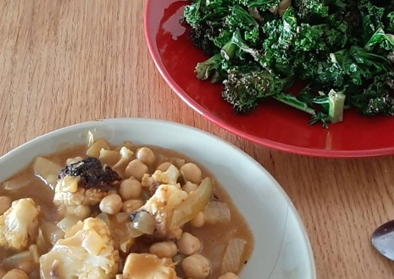 Hello everybody, it's Brad, welcome to our recipe site. Today, I'm gonna show you how to prepare a distinctive dish, Garbanzos al curry y kale crujiente. One of my favorites food recipes. For mine, I will make it a little bit unique. This is gonna smell and look delicious.