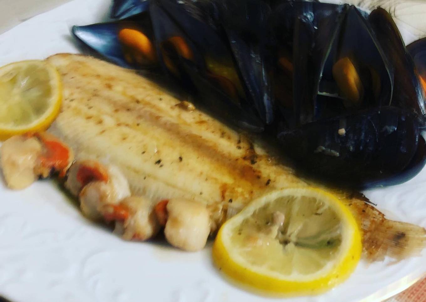 Lenguado a la maniere con mejillón al vapor y zamburiñas a la plancha